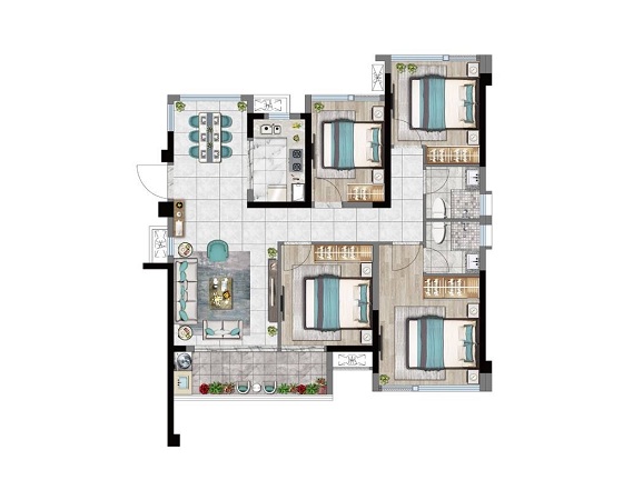 楼盘户型:3室户型 (4) , 4室户型 (1)