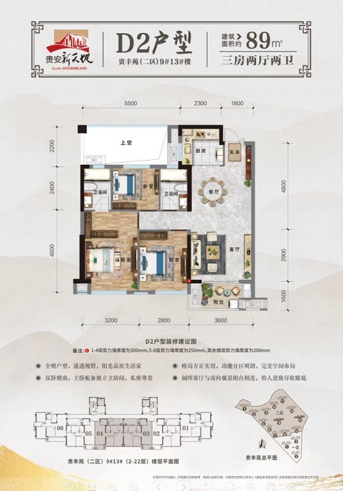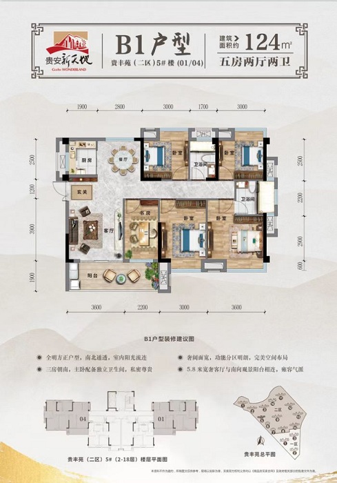 楼盘户型:2室户型 (1) , 3室户型 (5) , 4室户型 (1)