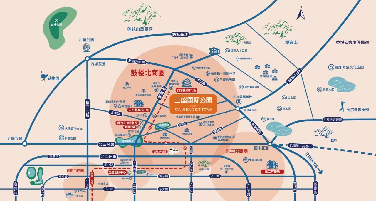 售楼处地址:福州市晋安区福峰路133号三盛国际公园营销中心